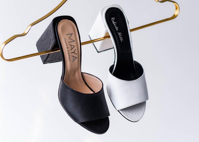 Классические мюли преобразились с помощью каблука.